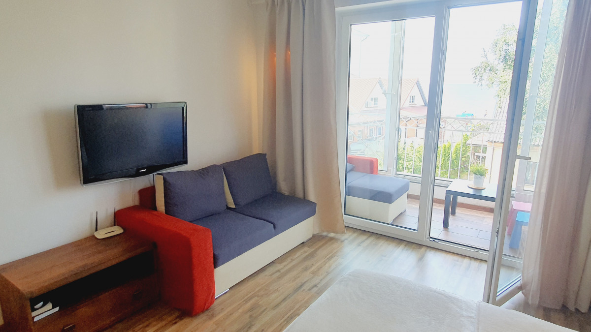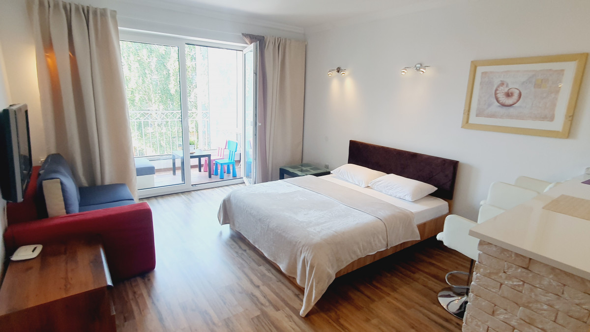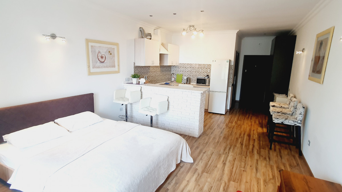 Уютные апартаменты с видом на море! Автономное отопление, полы в коридоре и санузле с подогревом. Застекленный с панорамными окнами балкон. 3 этаж Студия оснащена кроватью и двухместным диваном. Детская кроватка в наличии (по запросу). Дом находится в непосредственной близости от городского парка, где есть множество детских площадок и кафе, а также милое озеро с уточками и лебедями. До моря 50 метров и его видно из окна. Можно пить кофе и любоваться рассветом или закатом) Гостям предоставляется закрытая парковка.