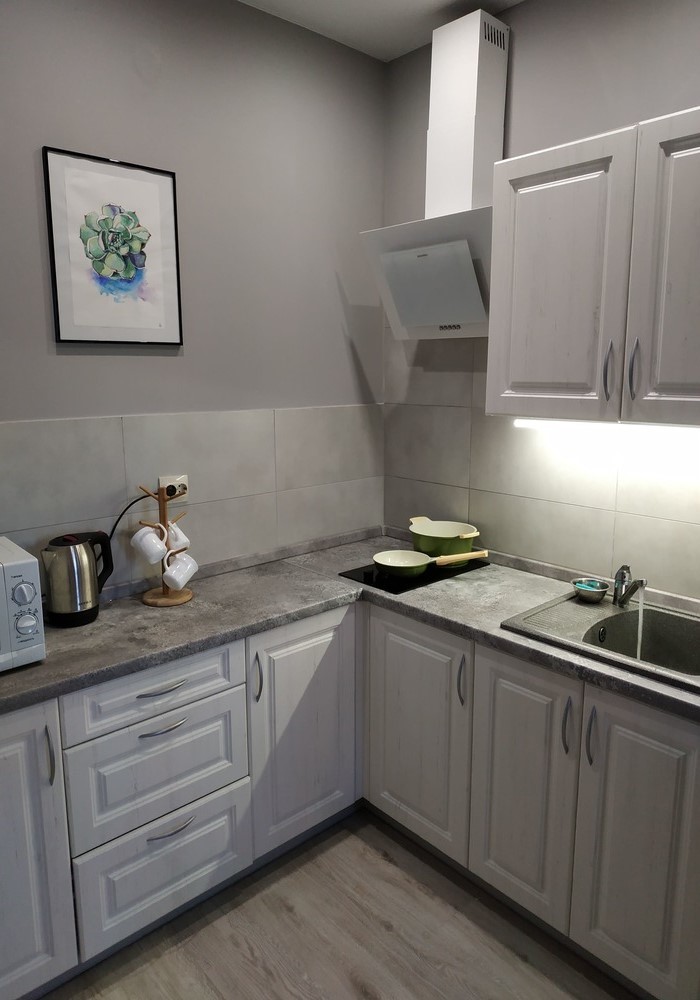 Уютные однокомнатные апартаменты на первом этаже пятиэтажного дома с закрытой территорией. В апартаментах есть все необходимое для вашего комфортного отдыха: телевизор, интернет, стиральная машина, гладильные принадлежности, кухня оборудована бытовой техникой, посудой и столовыми приборами. В коридоре вместительный гардеробный шкаф. Вместимость до 4-х гостей. Комфортные двухспальная кровать (160/200) в комнате и раскладной двухместный диван на кухне. Мы предоставляем качественное пастельное белье и полотенца. Хорошая звукоизоляция. Дом находится в самом сердце города, на второй линии от моря. В шаговой доступности море и большой зеленый парк, а также уютные кафе и ресторанчики, где вы всегда можете отведать местную и европейскую кухню. Мы всегда вам рады!