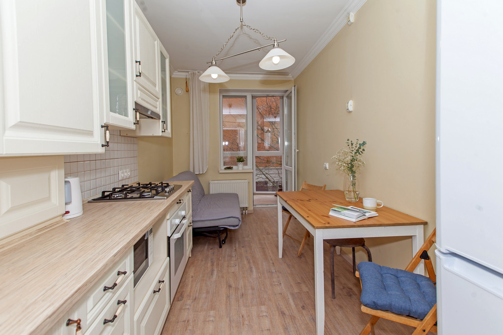 Сдается однокомнатная квартира с застекленным балконом расположены в Зеленоградске. Гости апартаментов могут пользоваться полностью оборудованной кухней с бытовой техникой, посудой и столовыми приборами, а также двухместным диваном. Апартаменты располагают одной спальней, где расположены телевизор, двухместный диван и детская кровать (170/90), одной ванной комнатой с ванной и стиральной машиной. Апартаменты находятся на 4-м этаже 8-ми этажного дома (в доме есть лифт), с закрытой территорией для парковки. Окна апартаментов выходят во двор, который оборудован современной детской площадкой. На первых этажах дома разместились магазины, кафе, аптеки, детские комнаты и многое другое. В непосредственной близости от дома находится большой зеленой парк с озером, где также есть кафе и детские площадки. Море в 10-ти минутах от дома. Национальный парк «Куршская коса» начинается буквально в 1 км. от апартаментов. Куда вы сможете отправиться с автобусной остановки на ул. Окружная, либо с вокзала (10-15 минут от апартаментов).