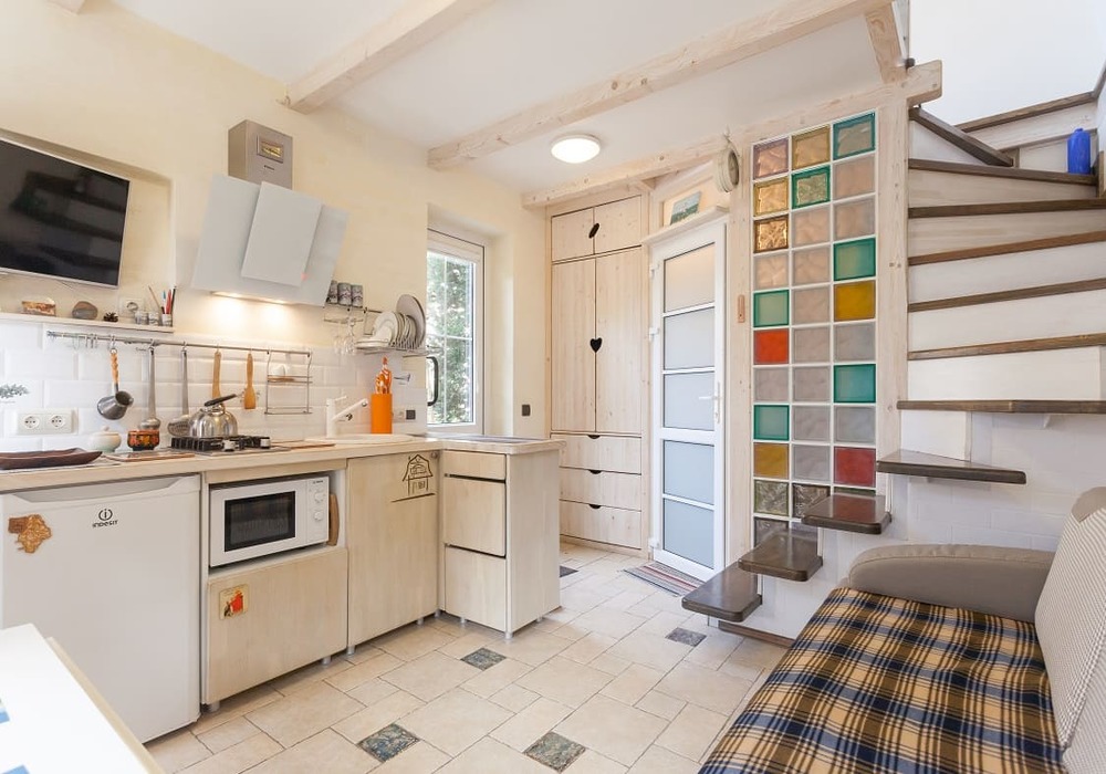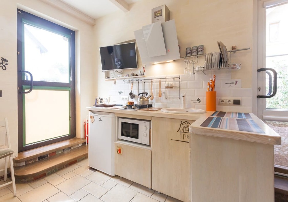 Конечно, такими простыми и привычными вещами, как стиральная машинка, телевизор, бесплатный Wi-Fi и горячий душ, никого не удивишь, но они есть, что позволяет комфортно жить в домике столько, сколько вы захотите.