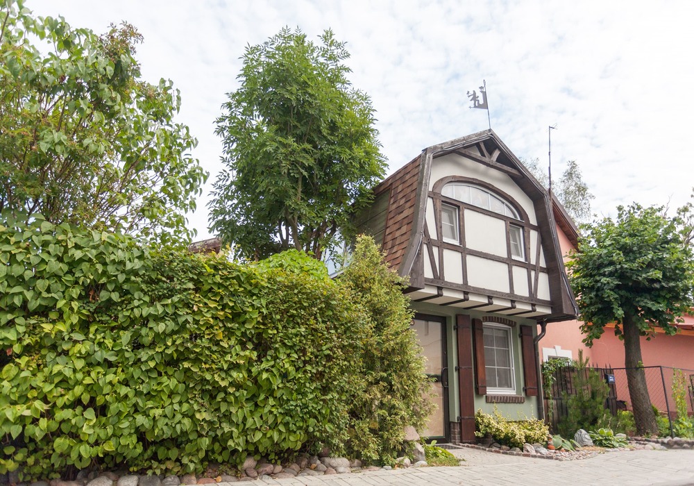 Снаружи домик украшен деревянными фахверками в старозеленоградском стиле, что органично вписывает его в исторический облик города.