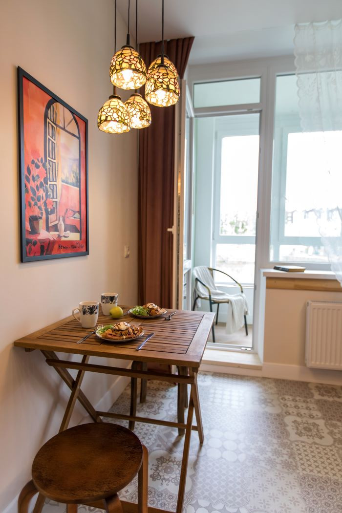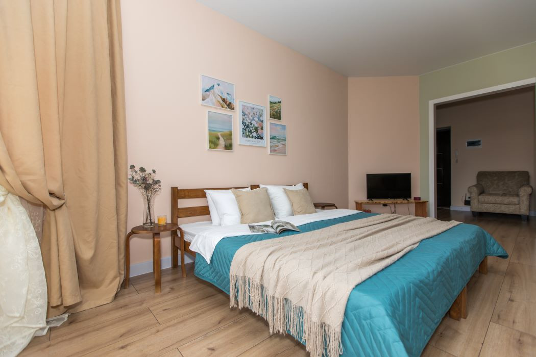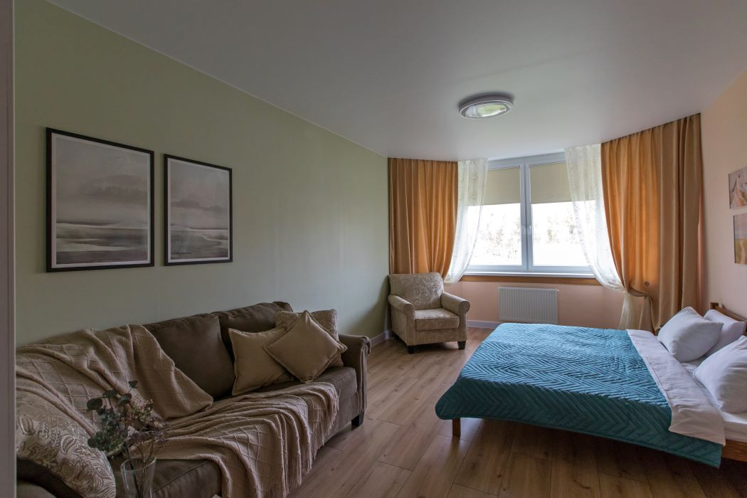 Представляем вашему вниманию стильную однокомнатную квартиру площадью 41,7 м² в живописном районе курортного Зеленоградска. Расположение рядом с живописным озером создает особую атмосферу спокойствия и умиротворения. Комфортное проживание В квартире предусмотрено все необходимое для комфортного размещения до 4 человек. В спальной зоне установлены две удобные односпальные кровати, а в гостиной - имеется функциональный раскладной диван. Полностью оборудованная кухня Современная кухня оснащена необходимой техникой и посудой для приготовления и приема пищи. Вы сможете насладиться домашними блюдами, приготовленными из свежих местных продуктов. Особая изюминка Главная гордость квартиры – балкон с великолепным видом на озеро. Здесь можно наслаждаться утренним кофе или вечерним чаем, наблюдая за водной гладью и наслаждаясь свежим воздухом. Удобное расположение Квартира находится в пешей доступности от автобусной остановки, откуда всего за несколько минут можно добраться до знаменитого природного объекта – Куршской косы. Это идеальное место для тех, кто хочет совместить пляжный отдых с исследованием природных достопримечательностей. Приглашаем вас остановиться в нашей уютной квартире, где каждый найдет свой идеальный отдых у озера в атмосфере домашнего комфорта.